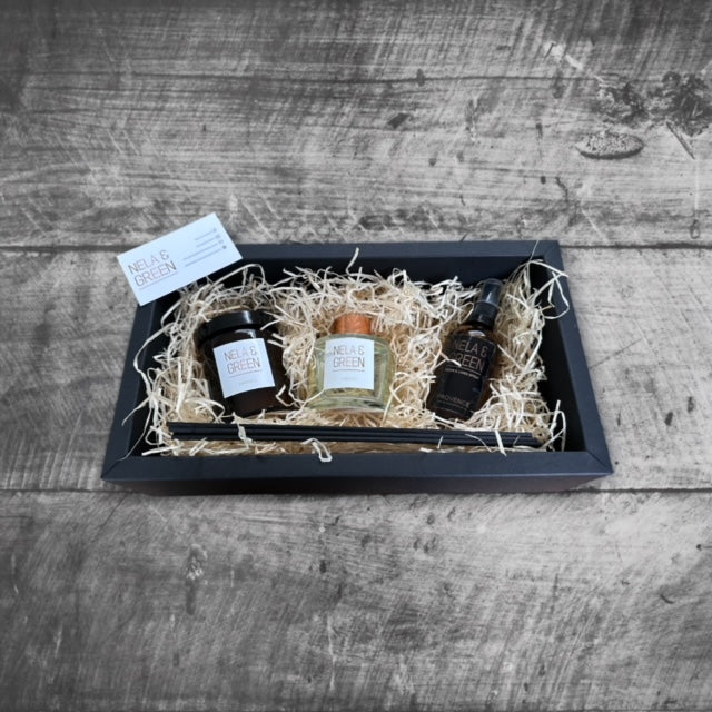 Choose from the scents in regular size to make your own bespoke gift. Before adding your selected fragrance names in the instructions box (on the shopping cart page) check first that they are all in stock on each product listing, or email nelaandgreen@gmail.com for guidance.